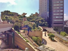 大阪球場の跡地に立地する商業施設。屋上のパークスガーデンには多種多様の植物が生い茂り、四季折々の生き物に出会える、都会の憩いのスポットになっています。