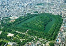 【1】クフ王のピラミッド、秦の始皇帝陵と並んで「世界三大墳墓」とも呼ばれる仁徳天皇陵古墳。空撮写真で見ると、周囲に陪塚が点在しているのがわかる。源右衛門山古墳や銅亀山古墳など10基以上におよぶ周囲の古墳もめぐってみよう。