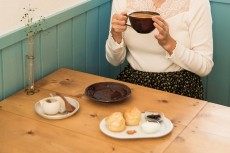 紅茶マイスターの店主が営むカフェは、時間がゆるやかに流れるような優しい雰囲気。季節ごとの紅茶と、全粒粉やてんさい糖など体に優しい 素材を使った焼菓子はセットで50円引きに。 タルトやパウンドケーキもぜひ味わって。