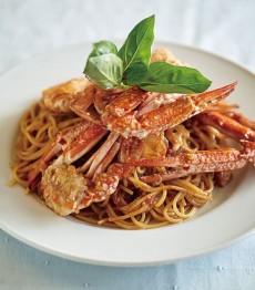 【1】トマトクリームソースで味わうわたりがにのパスタ 1,600円(税込み)カニはまるごと1杯を使用。