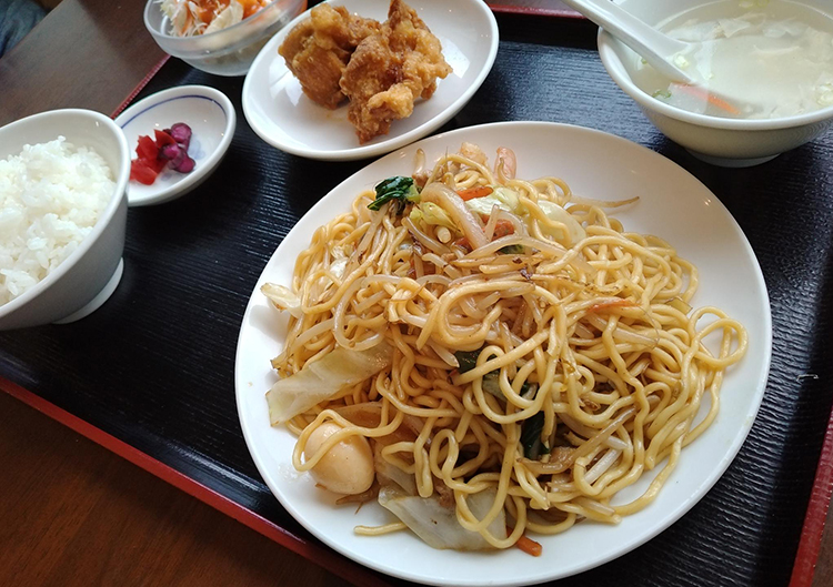 「焼きそば定食」は、味付けはあっさりでしたが、ウズラや野菜がたっぷりと入っているので見た目よりボリュームがあり、食べ応え十分。トロッとしたスープもおいしかったですよ。