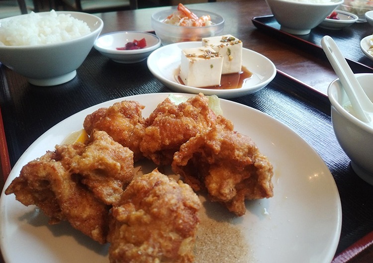 「唐揚げ定食」は、外はカリッっと中はジューシ―でまさに鶏唐揚げの王道の仕上がり。程よい大きさで、満足していただけること間違いなし。