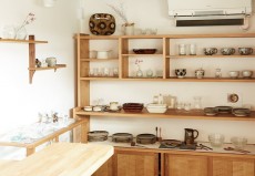 シンプルで美しい作品を食卓に 凛とした佇まいの作品が並ぶ 20人以上の作家作品を扱うお店。 お気に入りを1点ずつ集めると、テーブルコーディネートが叶うをテーマにセレクト。 丁寧な日々に寄り添う道具と出合えます。 写真左から 【1】店内は1階と2階に分かれており、装いの異なる雰囲気で商品が見られる。 【2】境道一の織部焼土瓶:14,300円。 【3】TULUSIWORKSのリムプレート黄色:2,640円〜。 【4】Studio bwanjiの花器:2,750円。 (すべて税込み)