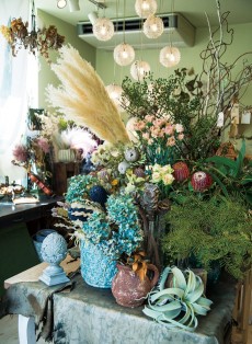 暮らしに彩り添える素敵な花をチョイス ハイセンスなアレンジメントを扱うおしゃれな お花屋さん。生花はもちろん、ドライ&プリザーブドフラワーなどを組み合わせ、予算や贈るシーンに合わせた最適なアレンジの提案をしてくれる。センスのいい花瓶や雑貨もチェックしてみて。