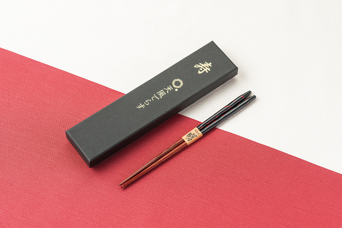 予約特典として、紀州の伝統工芸「曙塗」の漆器箸を1膳プレゼント。黒の中から朱がのぞく美しい塗りが、新年の食卓を華やかに彩ります。
